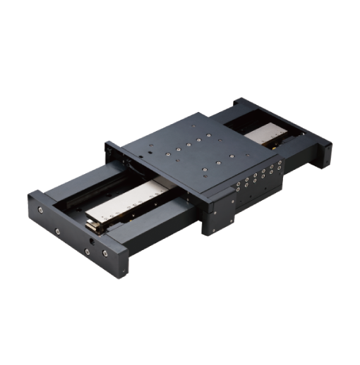 Class 1 clean room compatible. Stroke is 50mm to 500mm. The encoder can be selected from 1um to 0.05um depending on the application. Straightness and flatness are 0.5um/300mm. Pitching and yawing can be delivered with +/-2 arc sec coils, magnets, and encoders all installed.