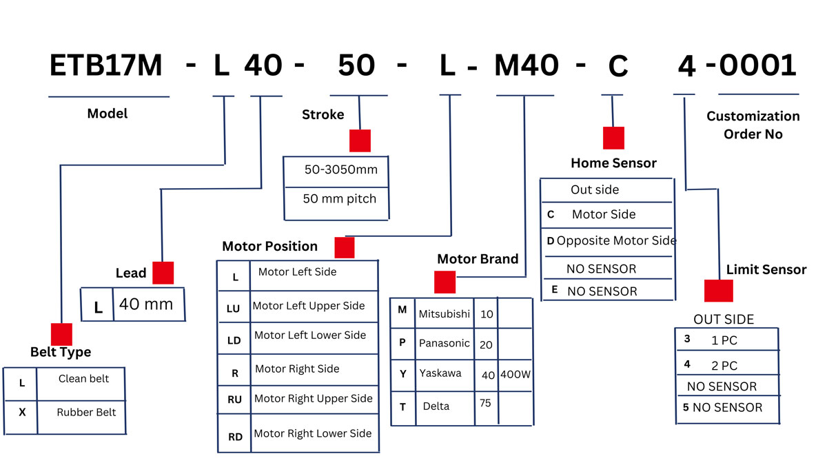 Stroke Pitch(mm) 50-3050mm/ 50 mm pitch